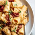 This Baked Feta Pasta 2.0 recipe is a delicious twist on the viral baked feta pasta trend. It features creamy baked feta cheese combined with burst cherry tomatoes, sun-dried tomatoes, and caramelized onions, tossed with al dente pasta and fresh basil for a flavorful, comforting dish perfect for any occasion.
