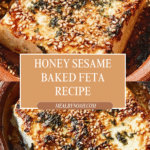 Keywords: baked feta, feta cheese recipe, sesame seeds, honey, Mediterranean appetizer, oven baked feta, easy party snack