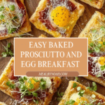 This Baked Prosciutto and Egg Breakfast Tart is a delightful morning treat combining flaky puff pastry with savory prosciutto and perfectly baked eggs. Topped with fresh microgreens and Parmesan, it’s both elegant and easy to prepare for any breakfast or brunch gathering.