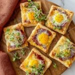 This Baked Prosciutto and Egg Breakfast Tart is a delightful morning treat featuring flaky puff pastry squares topped with savory prosciutto, a perfectly baked egg, parmesan cheese, and fresh microgreens. It’s an elegant yet simple recipe perfect for brunch or a special breakfast occasion.