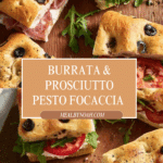 This Burrata, prosciutto & pesto focaccia sandwich is a delicious combination of soft, homemade focaccia bread paired with fresh burrata, salty prosciutto, and vibrant homemade pesto. It’s perfect for a gourmet lunch or a light dinner that feels special but is easy to prepare.