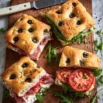 This Burrata, prosciutto & pesto focaccia sandwich is a delicious combination of soft, homemade focaccia bread paired with fresh burrata, salty prosciutto, and vibrant homemade pesto. It’s perfect for a gourmet lunch or a light dinner that feels special but is easy to prepare.