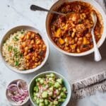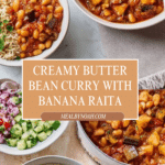 This butter bean curry is a comforting and flavorful vegetarian dish packed with tender aubergine, creamy beans, and warming spices. Served with a refreshing banana raita and wholegrain rice, it’s perfect for a wholesome weeknight meal or make-ahead lunch.