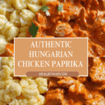 This traditional Hungarian Paprikás Csirke recipe features tender chicken breasts cooked in a rich and creamy paprika sauce, served alongside homemade nokedli, soft and fluffy Hungarian dumplings. A comforting and flavorful dish that perfectly balances the smoky sweetness of fresh Hungarian paprika with sour cream richness.