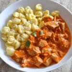 This traditional Hungarian Paprikás Csirke recipe features tender chicken breasts cooked in a rich and creamy paprika sauce, served alongside homemade nokedli, soft and fluffy Hungarian dumplings. A comforting and flavorful dish that perfectly balances the smoky sweetness of fresh Hungarian paprika with sour cream richness.