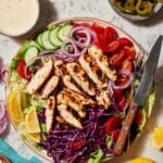 Keywords: Chicken shawarma salad, grilled chicken salad, Middle Eastern salad, tahini dressing, healthy chicken recipe
