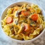 - If you want a gluten-free version, serve over gluten-free pasta or rice instead of egg noodles.