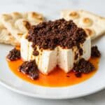 Keywords: baked feta, chili crunch, spicy appetizer, Mediterranean cheese dish, easy baked cheese recipe