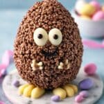 Keywords: Chocolate Easter egg, Rice Krispies treat, chocolate chick, no-bake dessert, Easter dessert, marzipan feet, festive chocolate egg