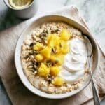 - Assemble and Serve: Spoon the cooked porridge into bowls. Top each serving with a generous dollop of plain bio yogurt, the warm baked banana pieces, and sprinkle the toasted three-seed mix over the top for added texture and flavor.