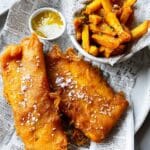 Keywords: fish and chips, battered fish, classic British recipe, fried fish, homemade tartare sauce