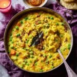 - Combine Tempering with Khichdi: Stir the tempering mixture into the simmering khichdi and cook for an additional 2 minutes. Remove from heat.