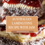 - Optional – Fill Lamingtons: Carefully slice the coated Lamingtons horizontally in half, spread strawberry jam on the bottom half, then add whipped cream on top. Place the top half back and refrigerate until serving.