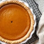 - Use a deep dish pie crust to accommodate the thick pumpkin filling and avoid spills.