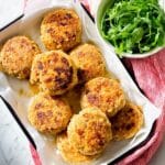 Deliciously light and flavorful cod and tarragon fishcakes served with a fresh minty peas and leek medley, topped with a zesty rocket salad. Oven-baked for a crispy exterior and tender inside, these fishcakes combine the subtle flavors of mustard, anchovies, and capers with fresh herbs, perfect for a wholesome and satisfying meal.