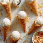 - Serve: Scoop the ice cream into cones or bowls and optionally top with shaved or toasted coconut flakes for added crunch and flavor.