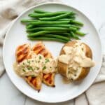 - Serve: Serve the creamy ranch chicken hot, optionally over baked potatoes with sauce spooned generously on top for an extra comforting meal.