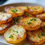 These crispy roasted baby potato rounds coated with Parmesan and herbs make a deliciously simple side dish. Perfectly golden and flavorful, they are sure to become a favorite for weeknight dinners or entertaining guests.