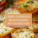 Keywords: roasted potatoes, crispy potato rounds, baby potatoes, Parmesan potatoes, herb potatoes, easy side dish