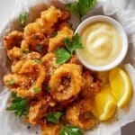 Crispy Salt & Pepper Squid is a deliciously crunchy seafood appetizer featuring tender baby squid and squid tubes coated in a light, crispy batter seasoned with salt and white pepper. Served with a flavorful garlic aioli, this dish is perfect for sharing or as a delightful starter.