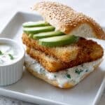 This crispy sesame fish burger with lime mayo offers a delightful twist on classic fish sandwiches. With crunchy coated fish fingers, creamy avocado, and a zesty cilantro-lime mayonnaise, it’s a fresh and flavorful meal perfect for a quick lunch or casual dinner.