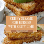 This Crispy Sesame Fish Burger with Lime Mayo features golden, crunchy fish fingers coated in sesame seeds and panko breadcrumbs, paired with creamy avocado slices and a zesty lime coriander mayo. Served on toasted buns, it’s a deliciously fresh and satisfying seafood sandwich perfect for a quick lunch or casual dinner.