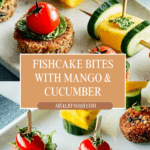 - Assemble the Bites: Spear the mango and cucumber skewers into the side of 12 fishcakes. For the other 12 fishcakes, spear the cherry tomato and coriander topped skewers through the top, creating colorful and tasty bite-sized snacks perfect for sharing or entertaining.