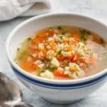Store leftover soup in an airtight container in the refrigerator for up to 3 days. Reheat gently on the stove or in the microwave until piping hot. You can also freeze the soup for up to 1 month; thaw overnight in the fridge before reheating.
