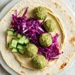 Keywords: edamame falafel, falafel wraps, baked falafel, vegetarian wraps, healthy wraps, Middle Eastern recipe