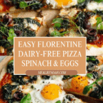 This Florentine dairy-free pizza combines a crispy homemade base with a rich tomato and spinach topping. Enhanced with your favorite toppings and a perfectly cooked egg, it’s a fresh and satisfying meal that’s easy to prepare at home.