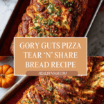 Gory guts pizza tear ‘n’ share bread is a fun and interactive twist on classic pizza, featuring soft, stretchy dough filled with rich tomato sauce, gooey cheese, and your favorite pizza toppings. The dough is shaped into sausage-like pieces resembling guts and baked until golden brown, then brushed with herby garlic butter for extra flavor. Perfect for sharing at parties or family gatherings.