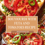 Greek Bouyiourdi is a traditional spicy baked feta and tomato dish bursting with Mediterranean flavors. This warm, comforting appetizer combines ripe tomatoes, garlic, feta cheese, green chili, oregano, and olive oil, baked to luscious perfection and served with warm pitta bread for dipping.