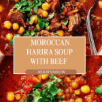 Keywords: Harira, Moroccan soup, beef stew, chickpeas, lentils, tomato stew, North African cuisine, hearty soup, spiced stew