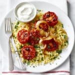 Harissa Roasted Tomatoes with Couscous and Herb Yogurt Sauce Recipe