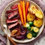 - Step 8: Slice the rested steak and serve it alongside the roasted vegetables with the gravy on the side.