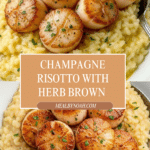 Keywords: scallops, brown butter, champagne risotto, seafood, creamy risotto, elegant dinner, French cuisine, garlic, fresh herbs