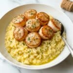 Keywords: scallops, brown butter, champagne risotto, seafood, creamy risotto, elegant dinner, French cuisine, garlic, fresh herbs