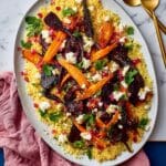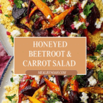 This honeyed beetroot and carrot salad with feta and hazelnuts is a vibrant, flavorful dish perfect for any season. Roasted vegetables infused with citrus and warming spices are paired with nutty grains, fresh herbs, and creamy feta for a satisfying meal or side.
