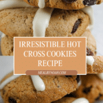 Deliciously spiced Hot Cross Cookies combining the classic flavors of cinnamon, sultanas, and white chocolate. These soft and golden cookies are topped with a delicate white chocolate cross, perfect for festive occasions or a sweet treat any time of year.