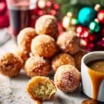 These hot doughnuts coated in a fragrant spiced sugared nut mixture are a delicious treat that combines crispiness with warm, aromatic flavors. Perfect for sharing, they’re irresistible dipped in salted caramel sauce.