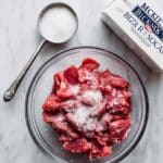 - Baking soda acts as a tenderising agent by breaking down the beef’s proteins, making it more tender.