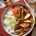 This Japanese-style chicken curry blends rich, savory flavors with a touch of sweetness and warming spices. It features tender roast chicken simmered in a fragrant curry sauce with potatoes and carrots, served perfectly over steamed rice. A comforting dish that’s both satisfying and easy to prepare.