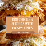 These Juicy BBQ Chicken Sliders are a flavorful and satisfying meal featuring tender shredded chicken cooked in a smoky barbecue sauce, served on toasted slider buns with melted cheddar cheese and fresh coleslaw. Paired with crispy oven-baked fries seasoned with paprika and sea salt, this recipe makes the perfect crowd-pleasing meal that is easy to prepare and packed with delicious textures and flavors.