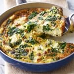This vibrant kale and goat’s cheese frittata is a delicious, nutritious meal perfect for any time of day. It features caramelised red onions, tender kale, a touch of balsamic vinegar for depth, and creamy goat’s cheese, all brought together in a fluffy baked egg base. Easy to make and full of flavor, it’s a satisfying vegetarian dish.