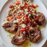 This recipe for lamb chops with thyme, chilli, and Greek htipiti brings bold Mediterranean flavors to your table. Juicy lamb cutlets are marinated to perfection and served alongside a vibrant, tangy roasted red pepper and feta dip. It’s a simple yet impressive dish perfect for a cozy dinner or entertaining guests.