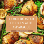 Keywords: lemon roasted chicken, spring chicken recipe, roasted asparagus and chicken, lemon garlic chicken, one pan chicken dinner