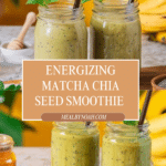 Keywords: Matcha smoothie, chia seed smoothie, vegan smoothie, healthy breakfast, antioxidant drink, almond milk smoothie, maple syrup sweetened