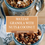 Keywords: matzah granola, jewish granola, crunchy granola, homemade granola, snack, breakfast, matzo recipe