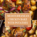 Keywords: Mediterranean chicken, baked chicken thighs, lemon garlic chicken, oven roasted chicken, chicken and potatoes, easy dinner recipe, healthy chicken dinner