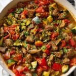This Mediterranean vegetables with lamb dish is a vibrant and flavorful meal perfect for a quick weeknight dinner. Combining tender lamb with a colorful mix of fresh vegetables and aromatic spices, it offers a healthy and satisfying taste of the Mediterranean.